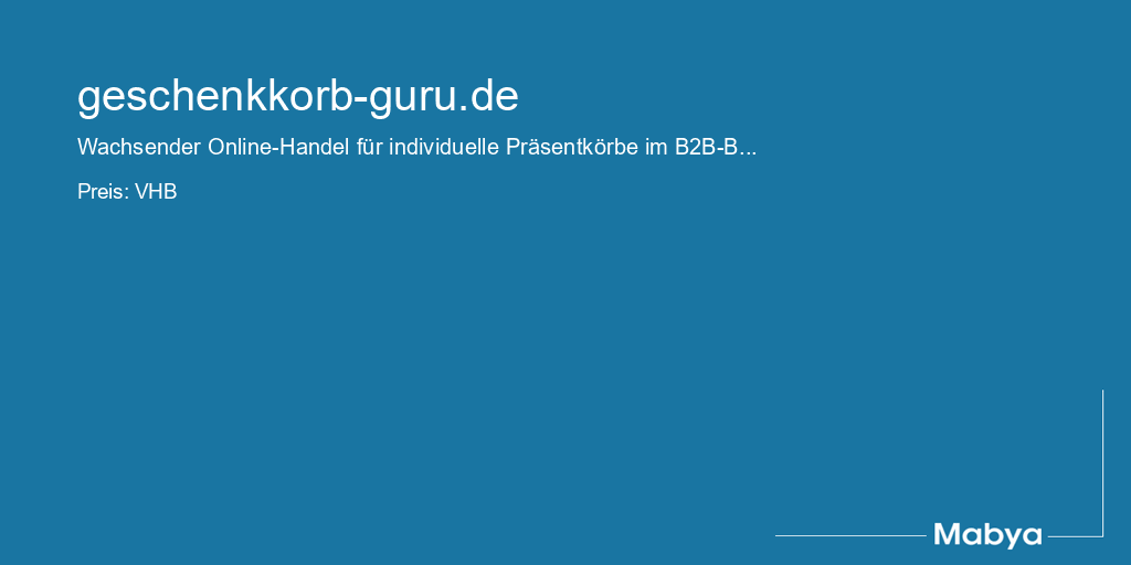Einen fertigen B2B-Online-Shop für Präsentkörbe mit einer guten Stammkundschaft in einem wachsenden Markt. Feste Bestandskunden mit Rahmenverträgen, Maillisten, Instagram-Account, Lieferanten-Kontakte etc. können übernommen werden. Das Geschäft eignet sich optimal, um zusätzlich einen Nebenerwerb zu erzielen und kann von Zuhause ausgeführt werden. Der Zeitaufwand kann individuell nach Anzahl der Aufträge sowie der eigenen freien Kapazitäten eingeteilt werden.