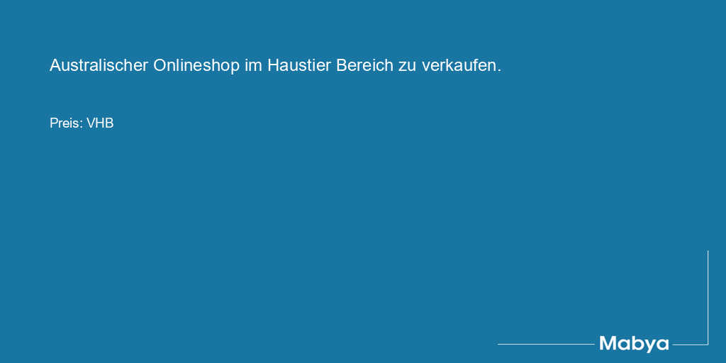 Es wird hier ein Onlineshop in der Haustier Nische verkauft, welcher nach Australien verkauft. Der Onlineshop hat in den Letzen Monaten ca. 90.000 € Umsatz gemacht und eine Gewinnmarge von 13-15%.