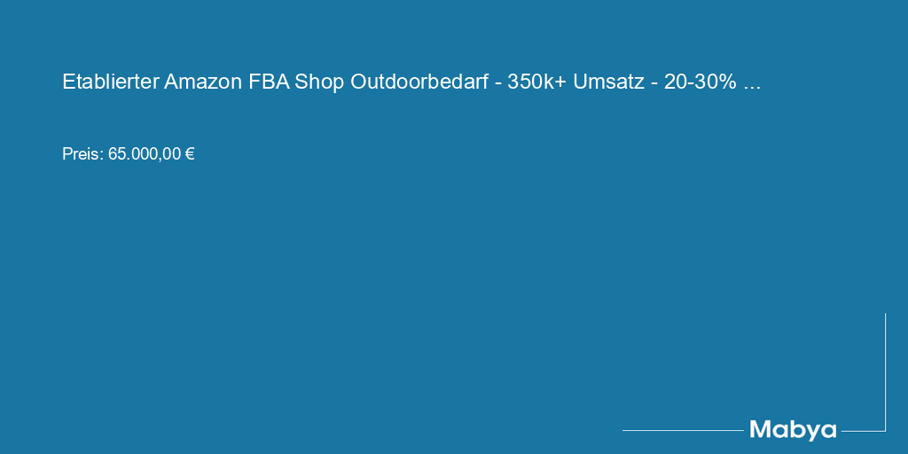 Etablierter Amazon FBA Shop Outdoorbedarf - 350k+ Umsatz - 20-30% Marge