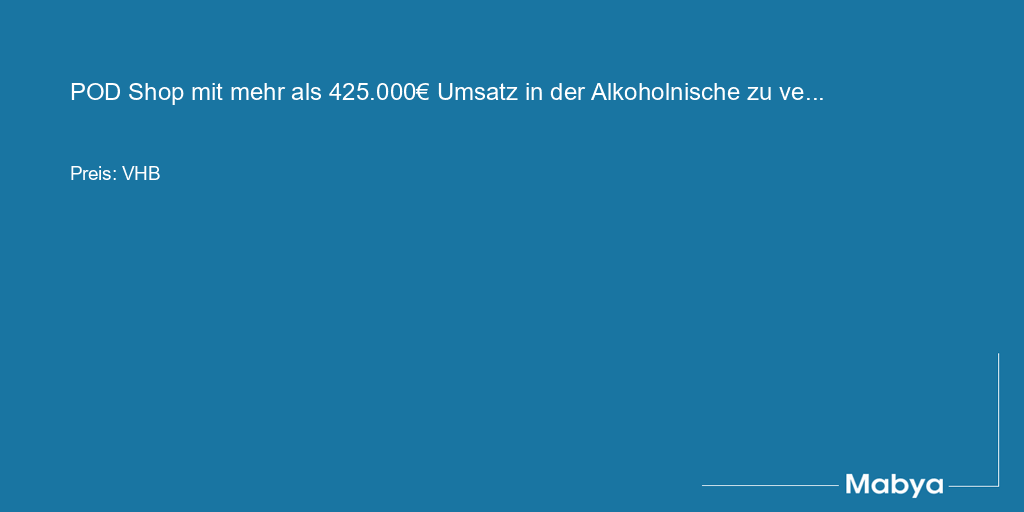 Wir bieten hier einen seit Anfang August 2021 bestehenden Onlineshop im Print on Demand Bereich in der Alkoholnische an. Der Shop hat ein extrem großes Potential (Q4+Weihnachtsgeschäft) und kann in kurzer Zeit sehr hoch skaliert werden.