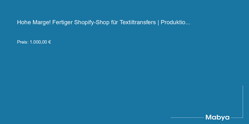 Hohe Marge! Fertiger Shopify-Shop für Textiltransfers | Produktion möglich!