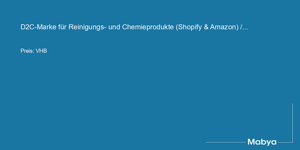 Unsere D2C-Marke basiert auf einem White-Label-Modell mit deutscher Produktion und fokussiert sich auf hochwertige Reinigungs- und Chemieprodukte für Haushalt und professionelle Anwender. Das Konzept ist vollständig entwickelt, rechtlich abgesichert und auf sofortige Skalierung ausgelegt – ideal für Markenaufbauer oder E-Commerce-Seller, die ohne Vorlaufzeit starten möchten.