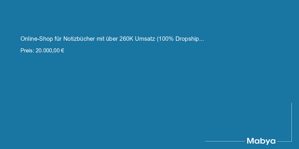 Zum Verkauf steht ein vollständig eingerichteter Dropshipping-Onlineshop seit 2023, der in den letzten 12 Monaten gute Umsätze erzielt hat, zuletzt aber wegen Zeitmangels nicht mehr richtig optimal skaliert werden kann. Nun suche ich einen Nachfolger, der dieses Projekt weiter leiten möchte. Als Hauptnischenprodukt werden Notizbücher angeboten, ideal geeignet für Geschäftsleute, Studenten oder auch als Geschenk perfekt geeignet. Die Mehrheit der Kunden sind Firmen (B2B Bereich) aber auch Privatkunden sind fest im Kundenstamm eingebunden (über 22.000). Der Shop hat sich markentechnisch etabliert, da es wie gesagt keinen anderen Shop wie es beim Dropshipping der Fall ist, die gleichen Produkte führt. Da ich seit Ende 2024 familiär und beruflich eingespannt bin und der Shop nicht mehr aktiv skaliert wurde, möchte ich dieses Projekt an jemanden übergeben, der den Shop wieder optimal skalieren möchte und das entsprechende Potenzial erkennt.