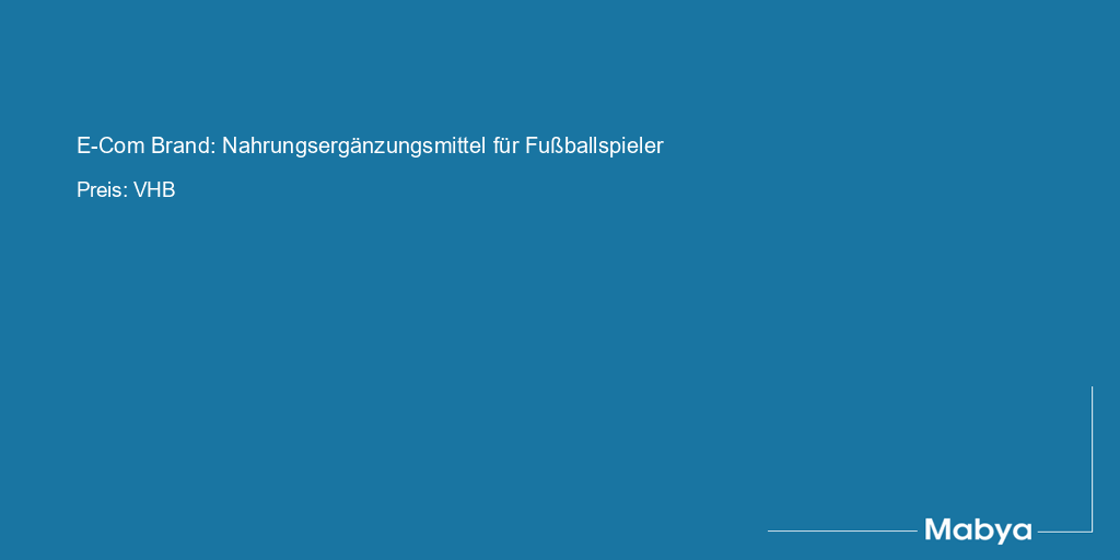 Erfolgreiche E‑Commerce-Marke im Bereich Nahrungsergänzungsmittel, speziell ausgerichtet auf Fußballspieler*innen im Alter von 18 bis 35 Jahren. Die Marke nutzt einen bewährten Technologie-Stack mit Shopify und Amazon und bedient die Märkte Deutschland und Österreich. Der Vertrieb erfolgt über mehrere Marketingkanäle, darunter Google Ads, Facebook Ads, Amazon, Affiliate-Marketing und E-Mail-Automation mit Klaviyo.