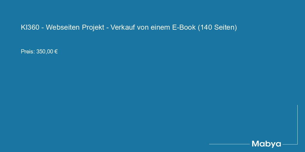 KI360 - Webseiten Projekt - Verkauf von einem E-Book (140 Seiten)
