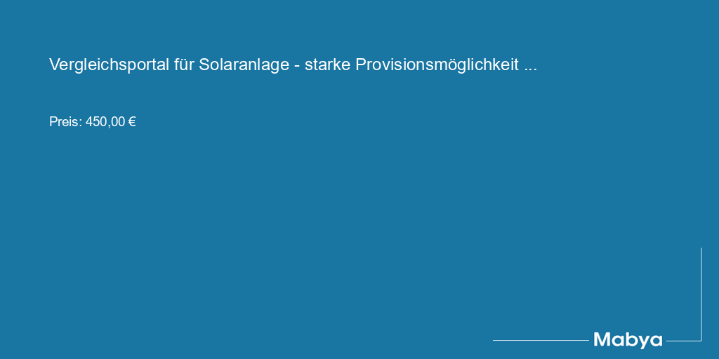 Verkaufsangebot: Vergleichsportal für Solaranlagen mit starkem Traffic und attraktiven Provisionsmöglichkeiten. Die Seite ist als affiliate-orientierte Leadseite aufgebaut und erzielt durch ein smart geführtes Formular besonders hohe Conversion-Raten. Zu den wichtigsten Vorteilen gehören eine starke, sieben Jahre alte Domain mit SEO-Vorteil, eine SEO-optimierte Startseite und FAQ zur Vertrauensbildung, sowie ein responsives und wartungsarmes WordPress-Setup. Die Lead-Provisionen liegen bei bis zu 30 € pro erfolgreichem Lead. Die monatlichen Betriebskosten sind mit 3 € sehr gering. Die Seite hat in den letzten Jahren Einnahmen erzielt; genaue Zahlen sind aufgrund verbundener Projekte nicht aufgeschlüsselt. Die beiliegende Statistik veranschaulicht die Besucherzahlen.
