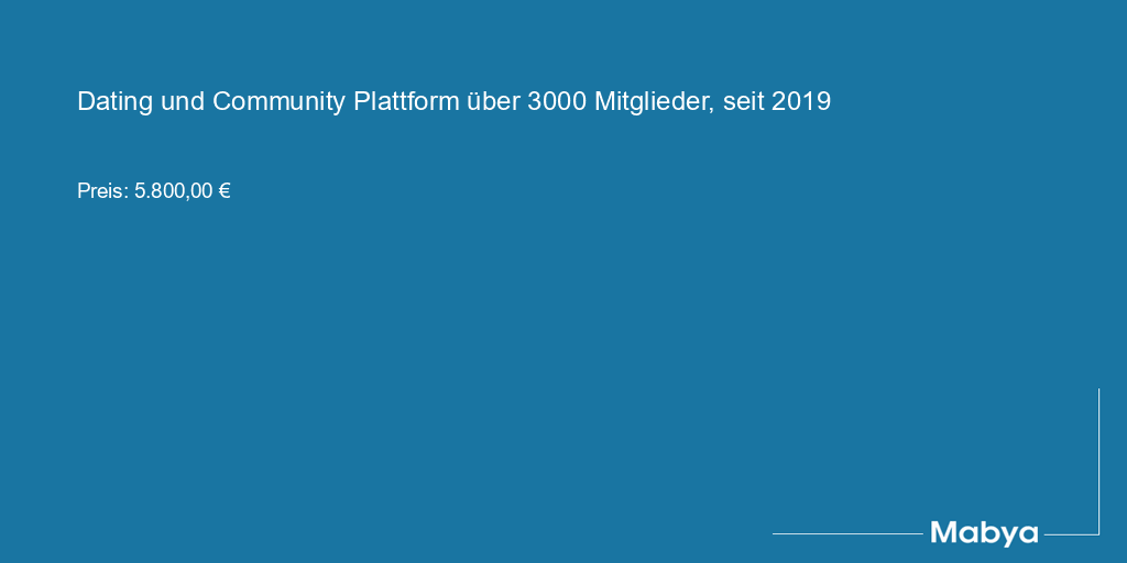 Zum Verkauf steht eine voll funktionsfähige Dating- und Community-Plattform auf Basis der bewährten Oxwall-Community-Software. Die Plattform ist direkt monetarisierungsfähig. Gegründet 2019, mit aktiver Payment-Phase 2020–2021 (nachweisbarer Umsatz 6.830 € im genannten Zeitraum). Anschließend wurde die Zahlung deaktiviert und die Plattform wurde seither nicht aktiv gepflegt. Die Plattform ist gut aufgebaut und bietet langfristiges Wachstumspotenzial, benötigt jedoch etwas Pflege vor einem Relaunch.