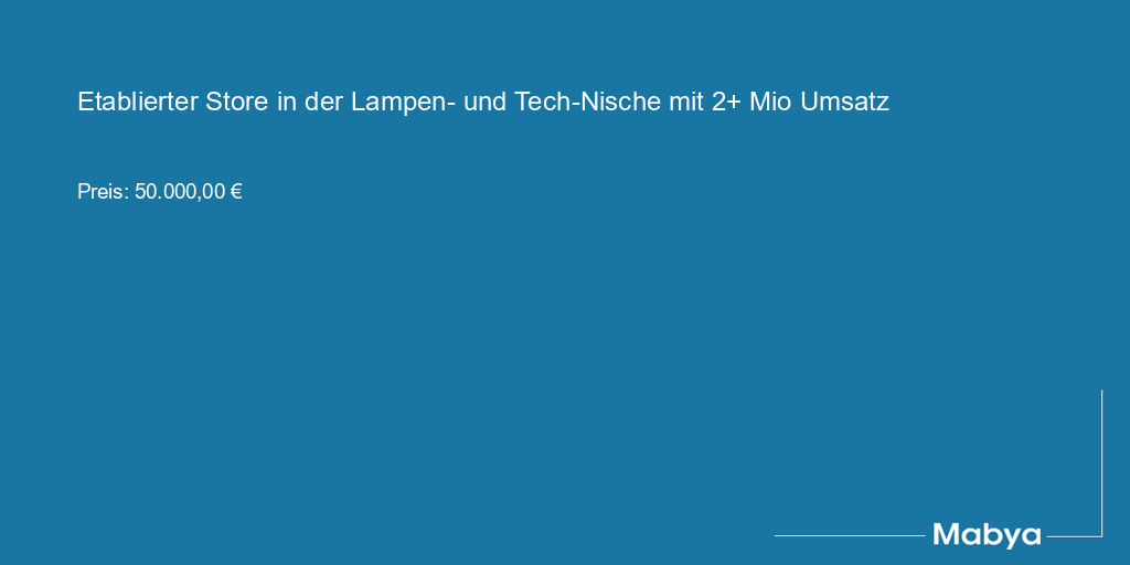 Etablierter Store in der Lampen- und Tech-Nische mit 2+ Mio Umsatz