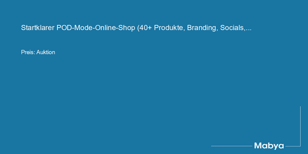 Der Shop eignet sich ideal für Käuferinnen und Käufer, die ein fertiges, professionell vorbereitetes POD-Modelabel mit starkem Fundament übernehmen möchten. Der Preis ist Verhandlungssache (VHB) und reflektiert die investierte Zeit, die Markenentwicklung, die umfangreiche Produkt- und Designbibliothek sowie die implementierten Systeme für Marketing, Conversion und Tracking.