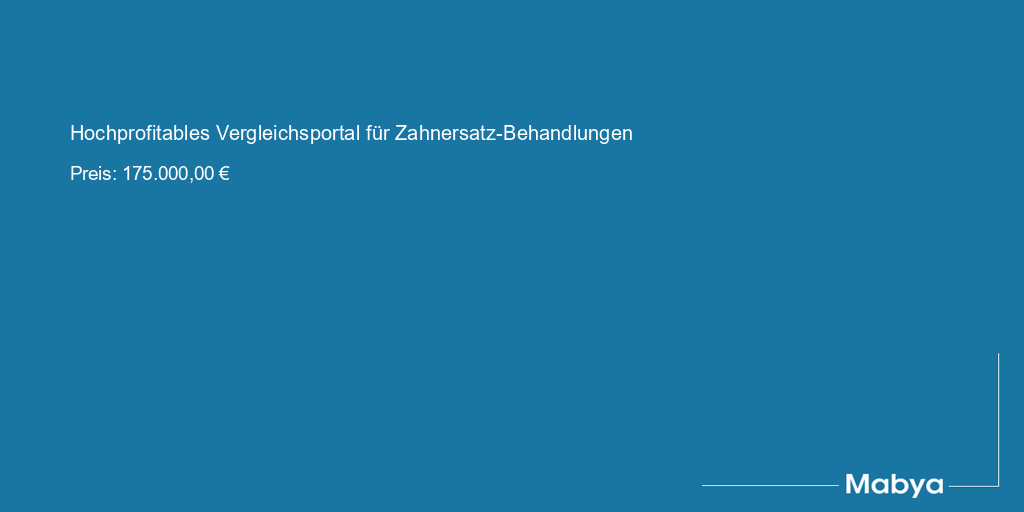 Verkauft wird ein etabliertes und profitables Vergleichsportal, das Patienten an geprüfte deutsche Zahnarztpraxen vermittelt. Insbesondere handelt es sich um Patienten, die große Zahnersatzversorgungen (vor allem implantatgetragene Versorgungen) planen und auf der Suche nach passenden Zahnarztpraxen in Deutschland sind. Das Geschäftsmodell kombiniert persönliche Beratung mit der Vermittlung kostengünstiger, hochwertiger Behandlungsmöglichkeiten in dieser Form einzigartig auf dem deutschen Markt. Das Portal ist seit mehreren Jahren am Markt, von Beginn an profitabel und operativ bewusst schlank gehalten.