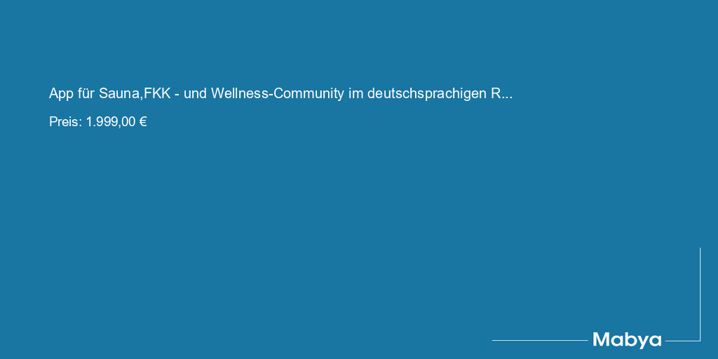 Zum Verkauf steht eine fertige Sauna- und Wellness-Community-App für den deutschsprachigen Markt. Die Anwendung kombiniert einen Thermenfinder mit Kartenansicht, ein aktives Community-Forum und einen News-Bereich. Besonderes Alleinstellungsmerkmal ist die Integration von FKK- und Naturismusanlagen, womit die Plattform gezielt eine bislang unterversorgte Nische im Wellnessbereich anspricht.