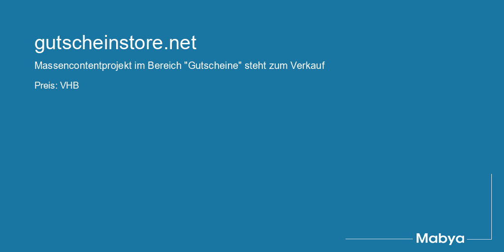 Massencontentprojekt im Bereich "Gutscheine" steht zum Verkauf
