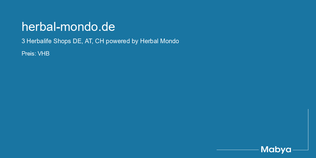 Wir haben mehrere Jahre im Network Marketing als selbständige Herbalife Berater gearbeitet und verkaufen heute das komplette Herbalife Geschäft bestehend aus 3 Onlineshops, inkl. Domains, 3 Facebook Fanseiten und die komplette Kundendatenbank pro Land. Wir verkaufen das Herbalife Geschäft, da wir uns vom aktiven Vertrieb und von der Kundenbetreuung verabschieden möchten. Die Marke Herbal Mondo kann auch mit anderen natürlichen Produkten in Verbindung gebracht werden. Sollten Sie also schon im Bereich "Green, Sport, Beauty oder Lifestyle" tätig sein, dann ist die Marke Herbal Mondo die richtige für Sie.