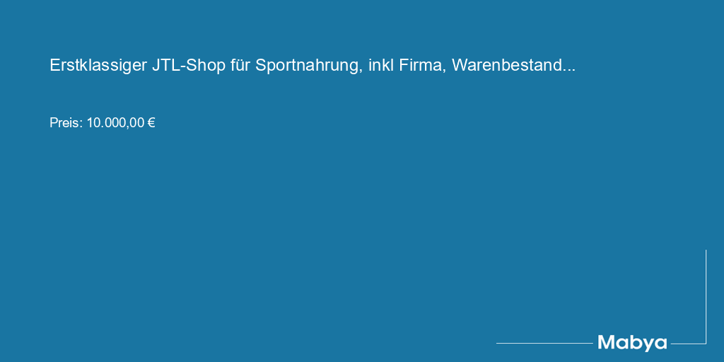 Erstklassiger JTL-Shop für Sportnahrung, inkl Firma, Warenbestand und Lagereinr