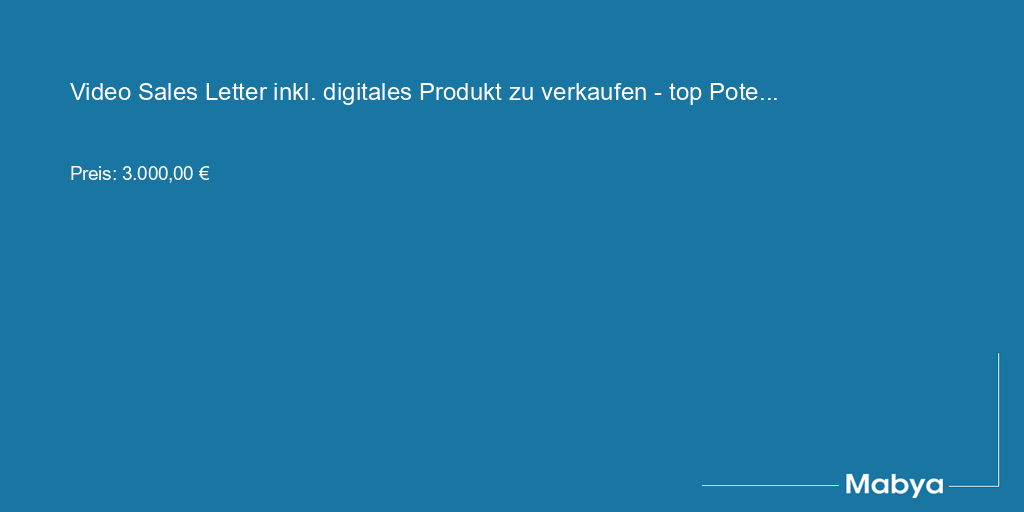 Video Sales Letter inkl. digitales Produkt zu verkaufen - top Potential !