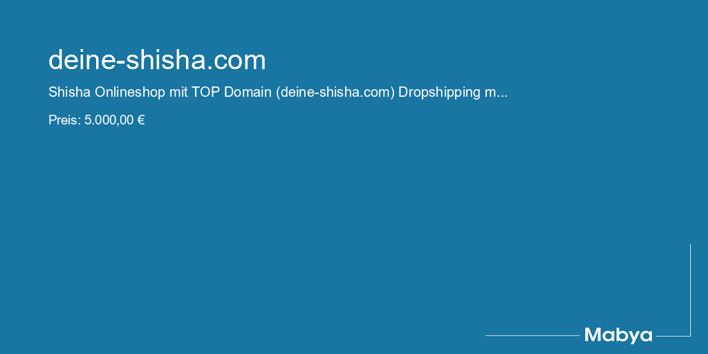 Shisha Onlineshop mit TOP Domain (deine-shisha.com) Dropshipping möglich!