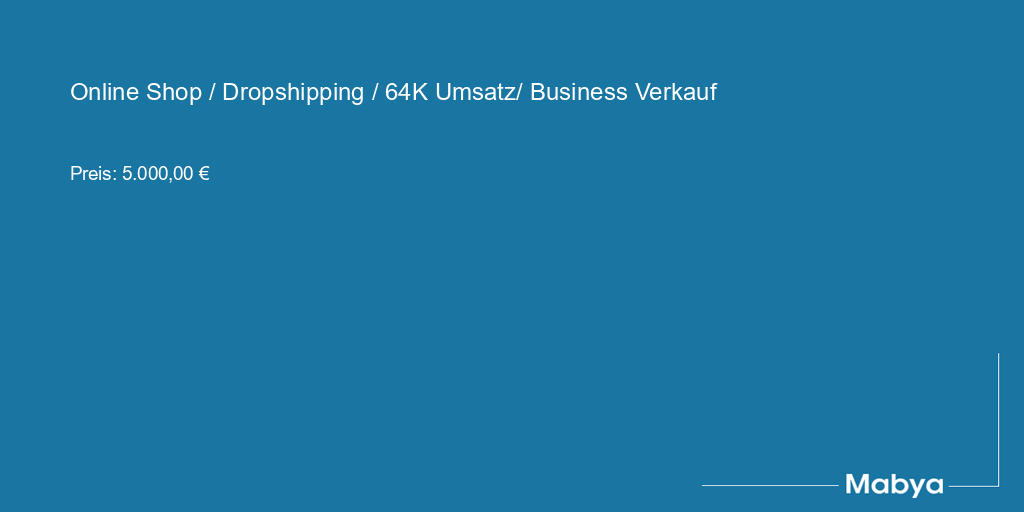 Online Shop / Dropshipping / 64K Umsatz/ Business Verkauf