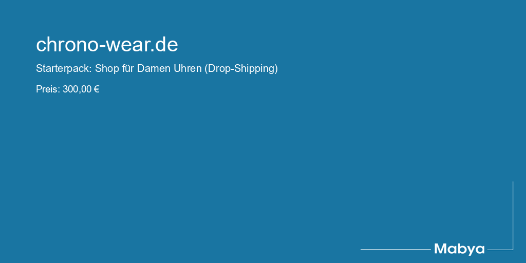 Wir haben die Website und das Konzept rund im Chrono-Wear Anfang 2021 im Lockdown ins Leben gerufen um eine alternative Verdienstmöglichkeit aufzubauen. Leider beißt sich dieser langfristige Plan nun mit unseren Zukunftsplänen (Studium etc.) weshalb wir uns dazu entschlossen haben die Seite als Starterpack zu verkaufen. Der Shop wird über Shopify betrieben und ist zu 100% ready to go. Es handelt sich hierbei um klassisches Drop-Shipping von Damen Uhren wobei alle Produkte von ausgewählten Händlern stammen welche einen Reibungslosenversand ermöglichen. Bestellungen können weitgehend automatisch über Oberlo verwaltet und abgewickelt werden. Die Lieferzeit liegt bei meistens 10 bis maximal 30 Tagen, alle Produkte sind hochwertig und gut verpackt. Die Gewinnmargen haben wir Anfangs auf ~50% (bis zu 25€ pro Verkauf) angesetzt wobei noch deutlich Luft nach oben besteht da Modelle der gleichen Marke oftmals für mehr als das doppelte Verkauft werden.