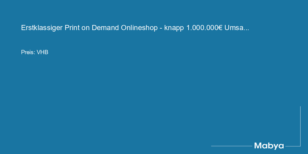 Wir bieten dir unseren Online-Shop im Bereich Print on Demand zum Kauf an, der seit dem 17. August 2020 besteht. Über den Zeitraum 2020 bis heute hat dieser einen Umsatz erwirtschaftet von +948.564,20 € mit einem Gewinn von +22 %