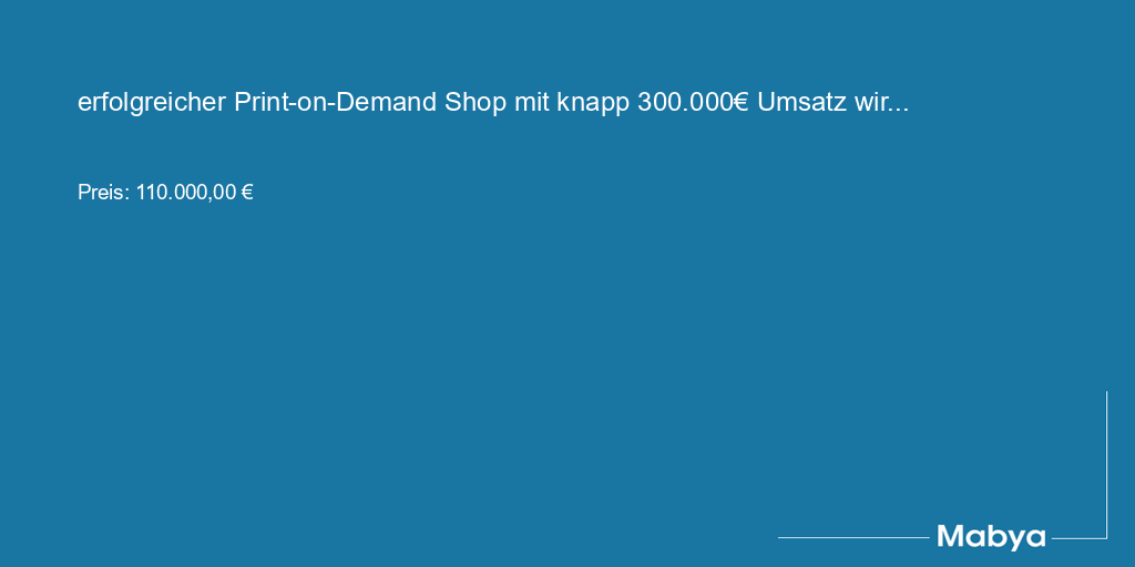 erfolgreicher Print-on-Demand Shop mit knapp 300.000€ Umsatz wird verkauft
