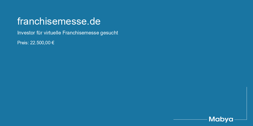 Mit der Webseite "Franchisemesse.de" haben Sie die Möglichkeit, sich als Investor/in an unserer neuen Top-Domain zu beteiligen, die einen äußerst innovativen und lukrativen Markt erschließen wird.