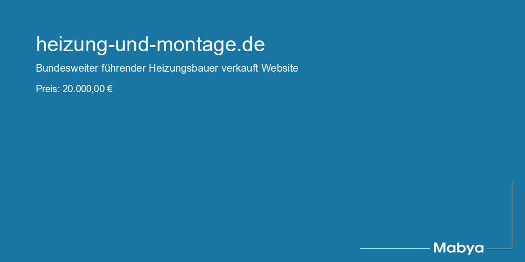 Sie erhalten unsere erfolgreiche Domain: heizung-und-montage.de inklusive der Markenrechte übertragen.
