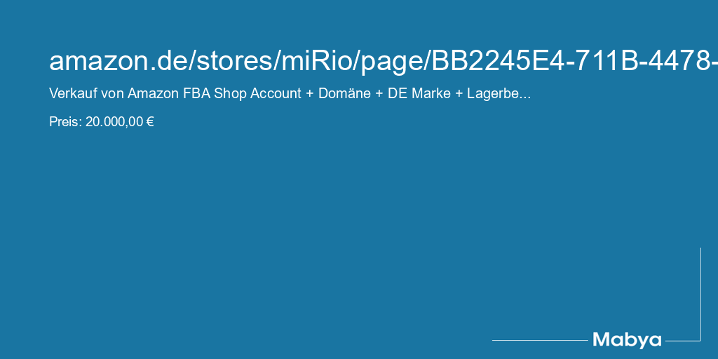 Verkauf von Amazon FBA Shop Account + Domäne + DE Marke + Lagerbestand