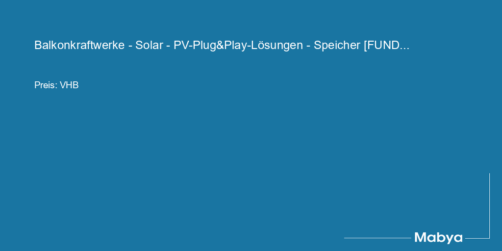 Balkonkraftwerke - Solar - PV-Plug&Play-Lösungen - Speicher [FUNDING >> GEWINN]
