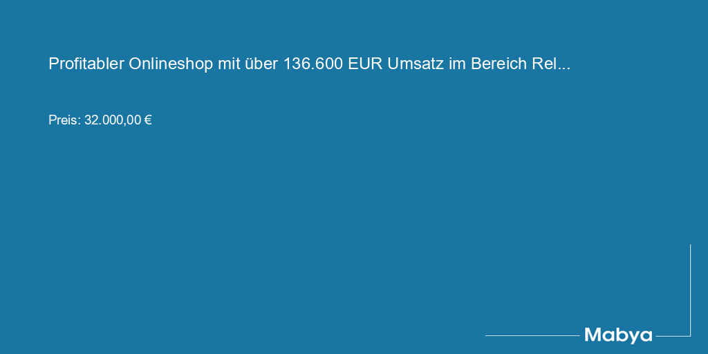 letzten 2 Jahren 136'600 EUR mit einer Gewinn-Marge von 30%. Das Sortiment
