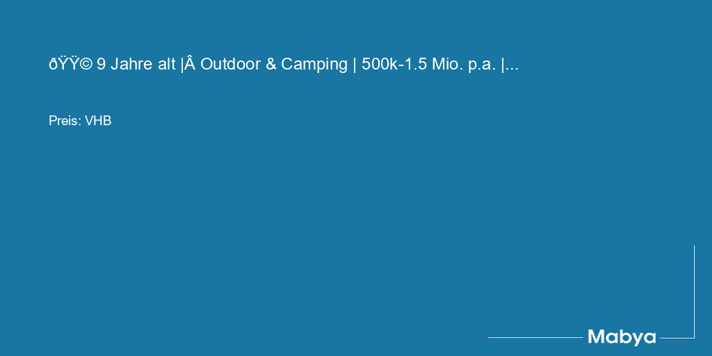 🟩 9 Jahre alt | Outdoor & Camping | 500k-1.5 Mio. p.a. | Sehr etablierte Mar